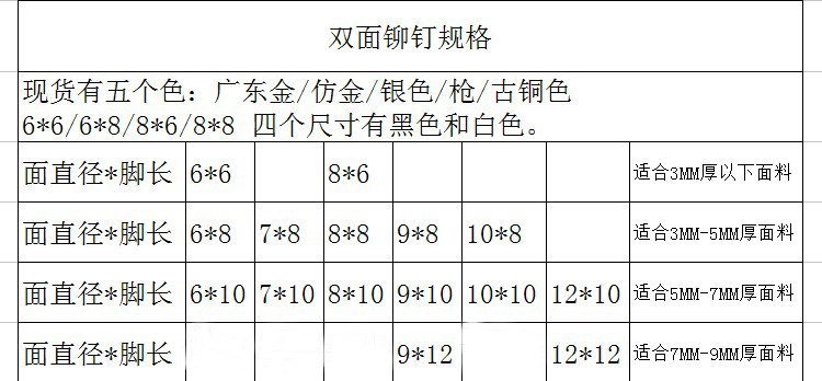 Plane Ram double sided rivet Bag Sandbag Sandals Accessories Crashes Nail buttons Notre Dame Knots Round Knots Knots Knots Knots