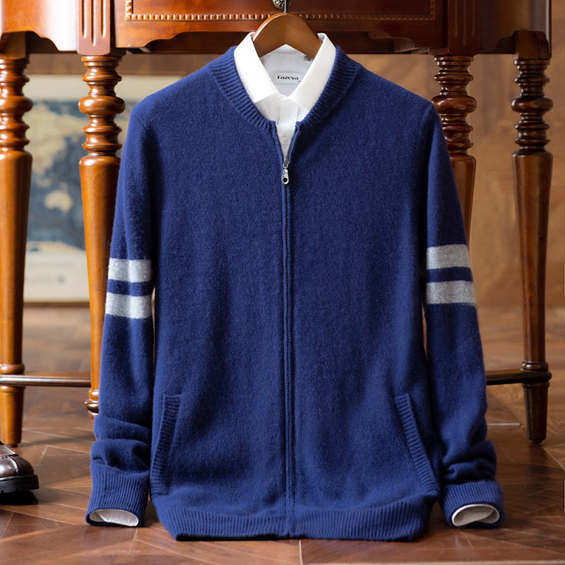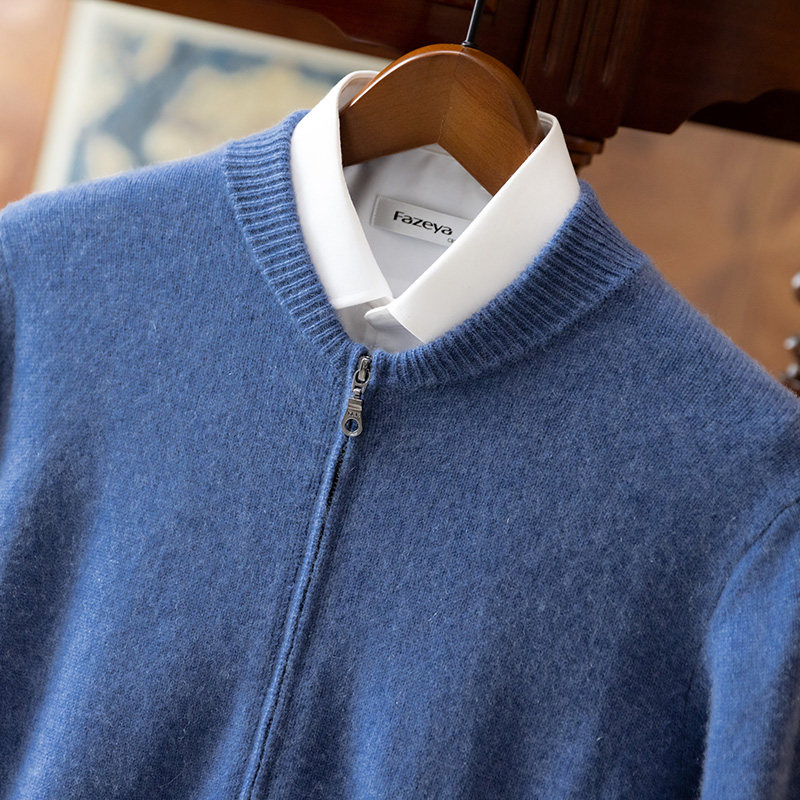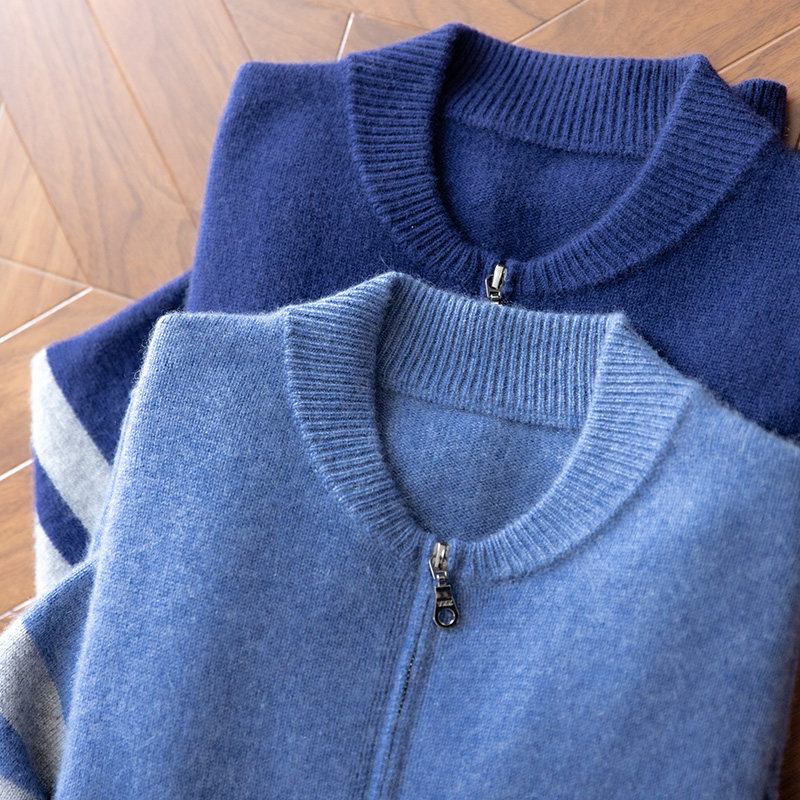 100 pure cashmere sweater men's zipper cardigan autumn and winter knitted loose plus velvet thickened warm casual jacket