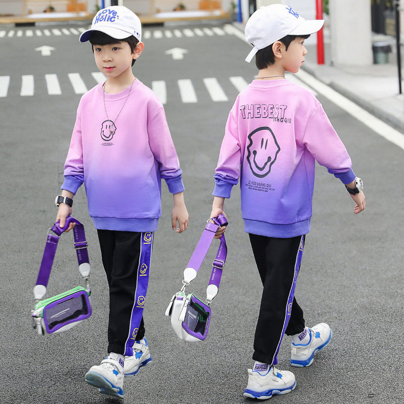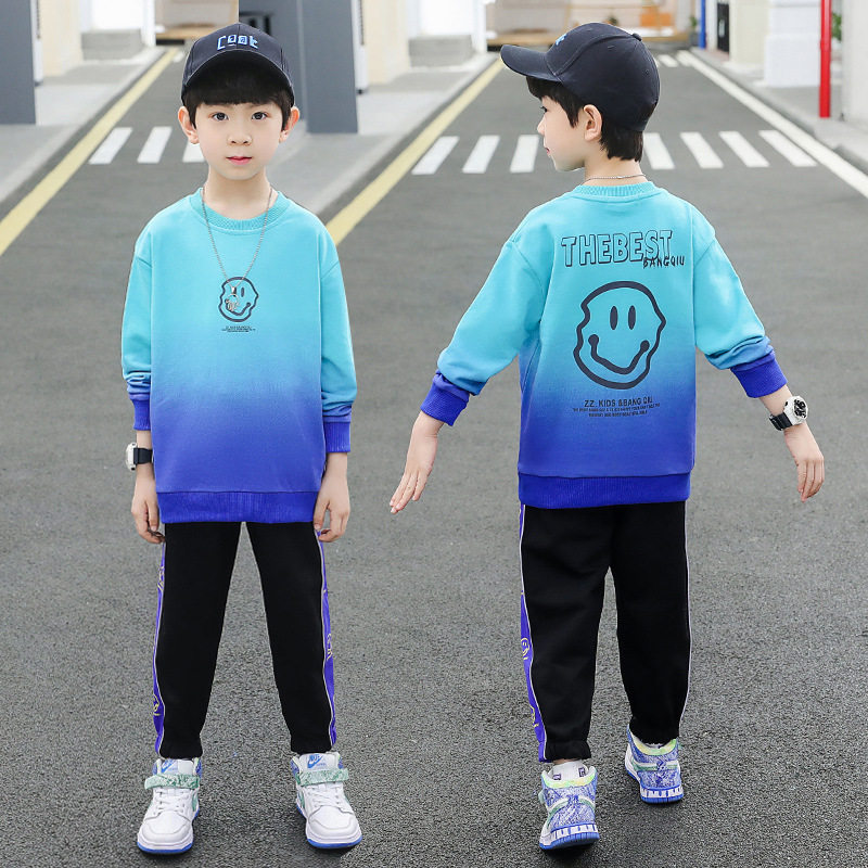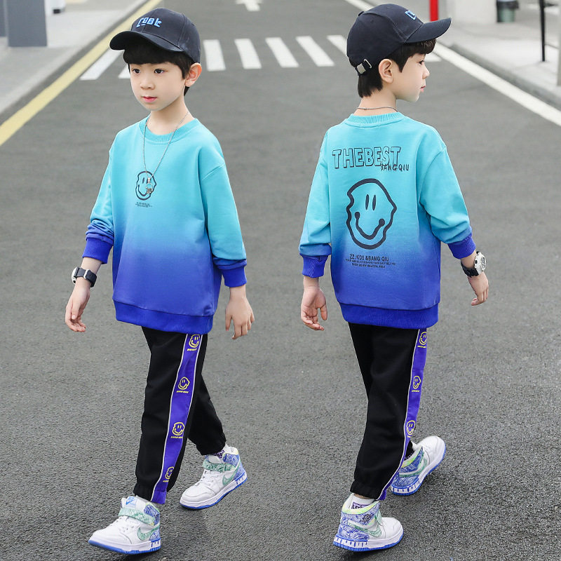 Korean boy smiley sweater spring and autumn suit 2021 new middle-aged boy handsome style Korean casual clothes children's clothing
