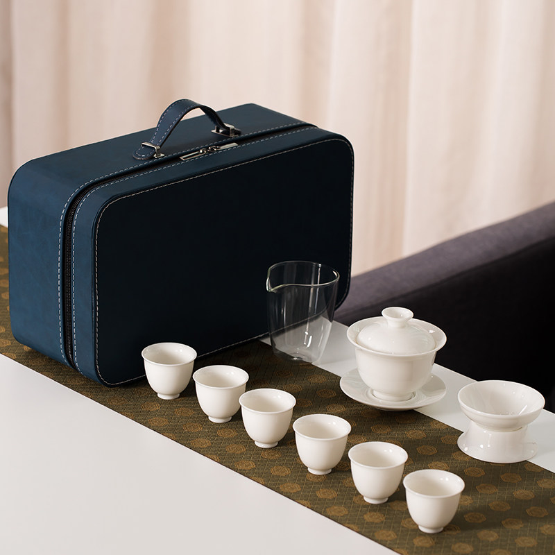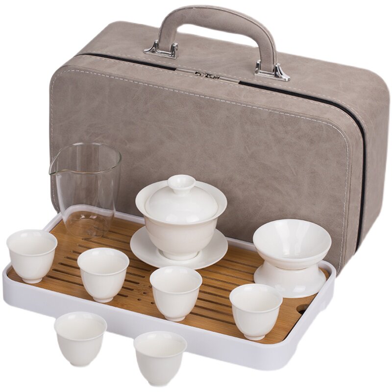 Defied White Porcelain Sheep Fat Jade Cover Bowl Teapot Portable Travel Kung Fu Tea Set Group Home Gift Custom Logo