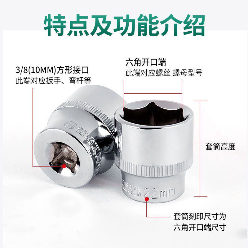 (durable) 3 8 medium flying chrome vanadium steel sleeve short sleeve suit wrench lengthened sleeve hexagonal sleeve head