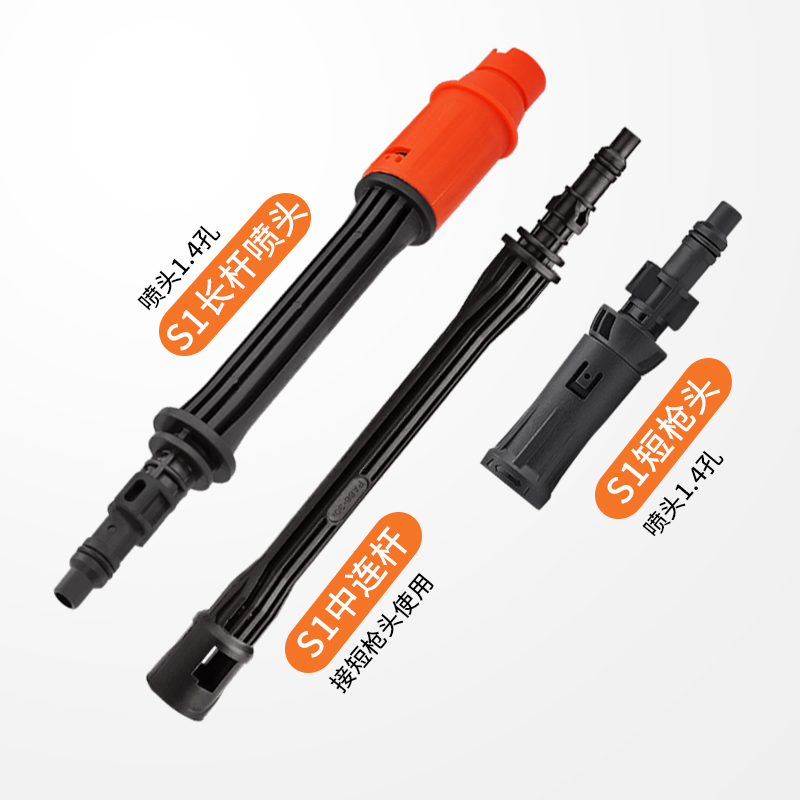 S1 foam pot S1 short gun head (1 4 holes) S1 midbar (32cm) S1 long bar nozzle (1 4 holes) S1-1 4 quick pick up bar S1-1 4 quick pick up bar 4 color
