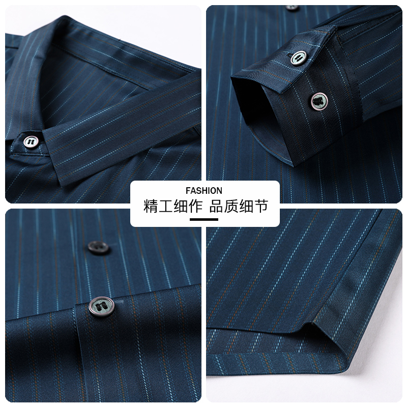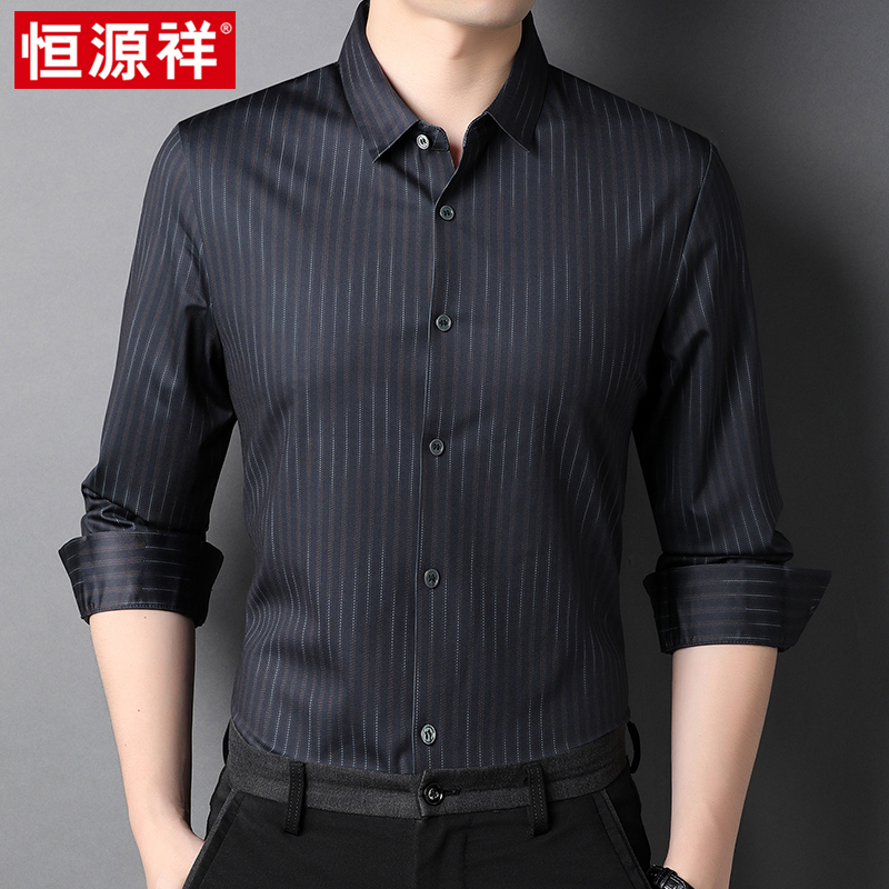 Hengyuanxiang solid color striped simple shirt middle-aged and elderly men's long-sleeved shirt business slim Korean style non-ironing shirt