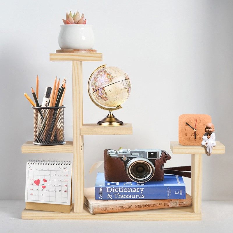 Office desktop storage rack home space-saving simple storage box wooden shelf creative solid wood multi-layer rack