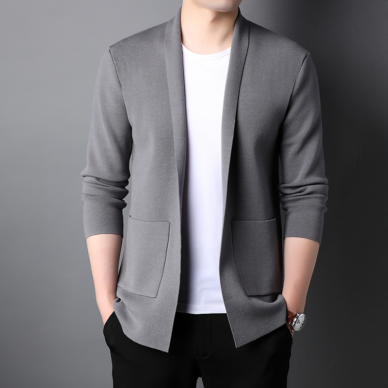 Spring and autumn casual men's knitted cardiovert men's fashion shawl pure color 100 lap no buckle green sweater jacket jacket men's clothing