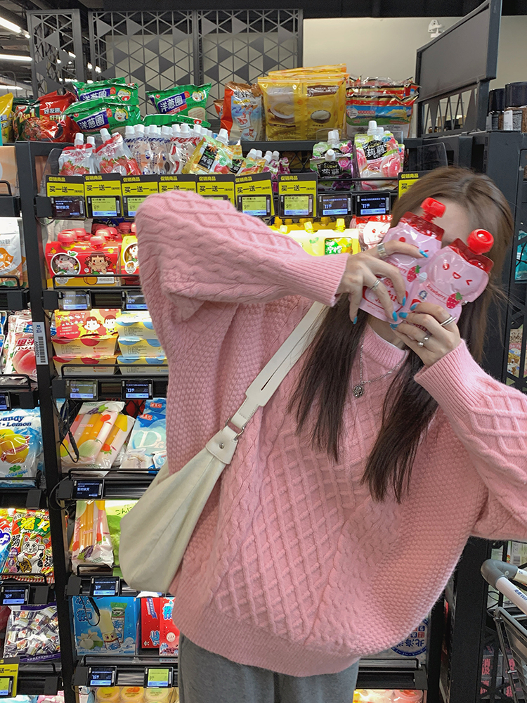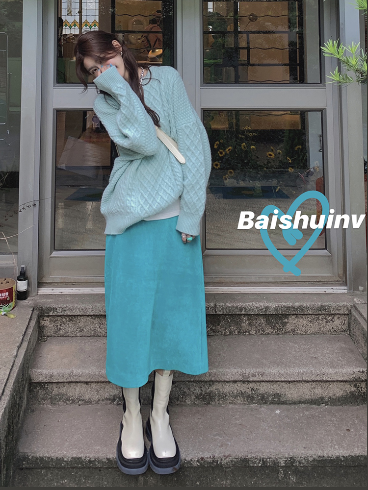 Diamond 2021 Blue Pullover Sweater Women's Loose Outer Wear Autumn and Winter Gentle Wind Thickened Warm Mid-Length Top - Taobao