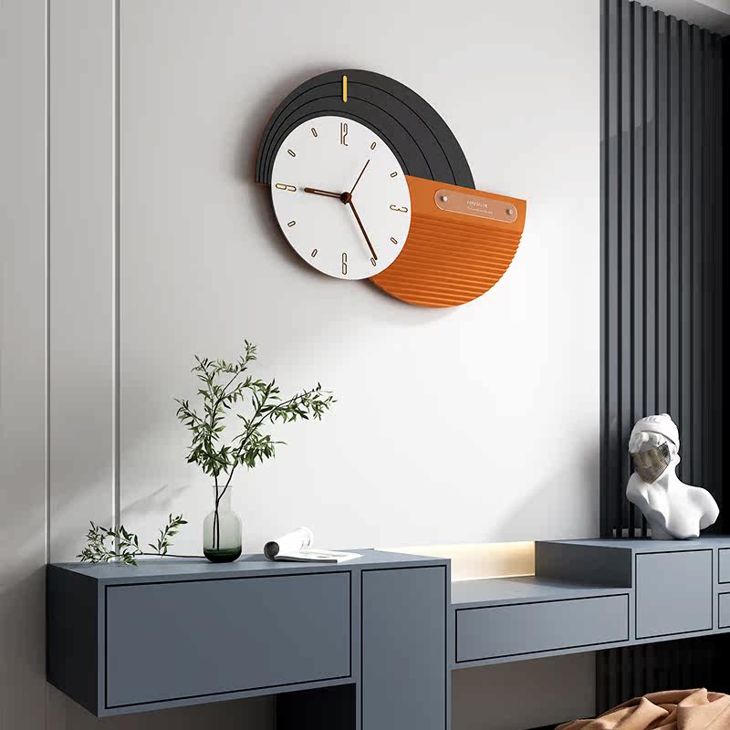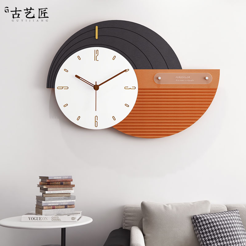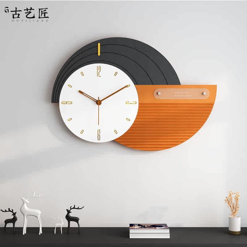 New modern high-end light luxury wall clock art simple Japanese clock living room household wooden fashion decorative clock