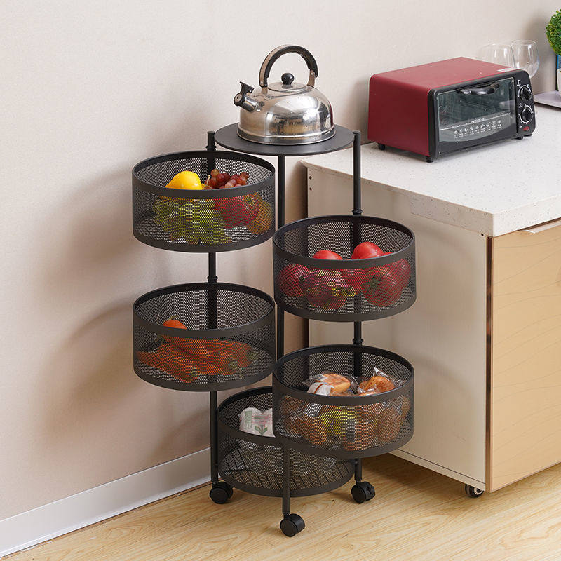 Kitchen Vegetable Shelving Multilayer Floor Round Rotatable Vegetable Basket Fruit Storage Containing Basket Shelving Shelf