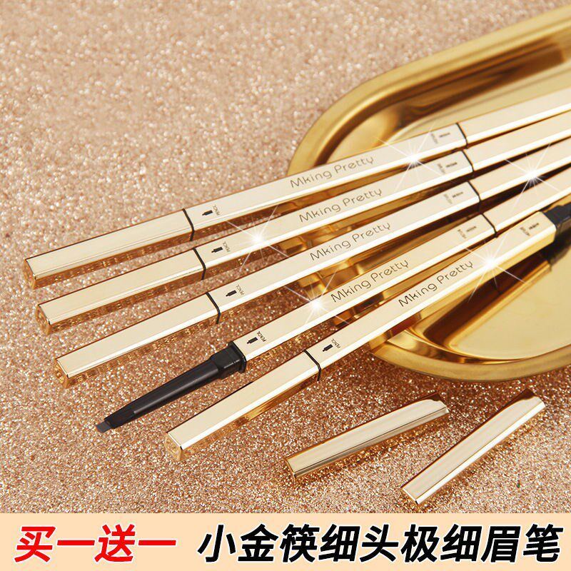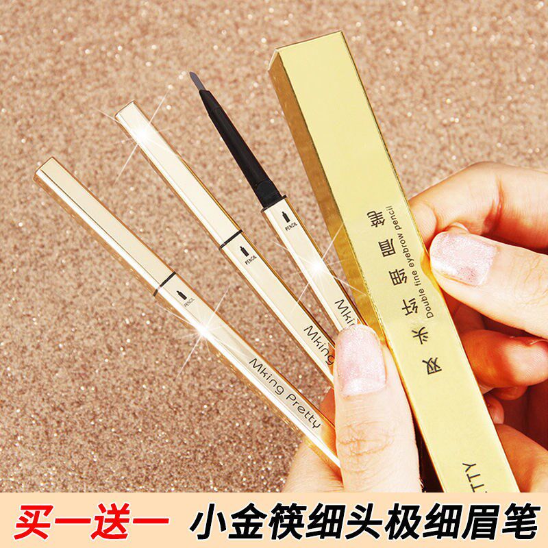 Small gold chopstick refill small gold bar double head eyebrow pen waterproof and anti-perspiration lasting not dropping color beginners slim head deep blue extremely thin