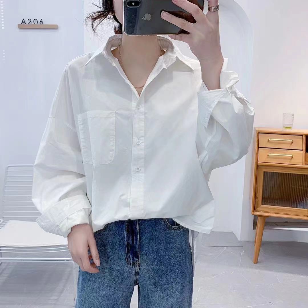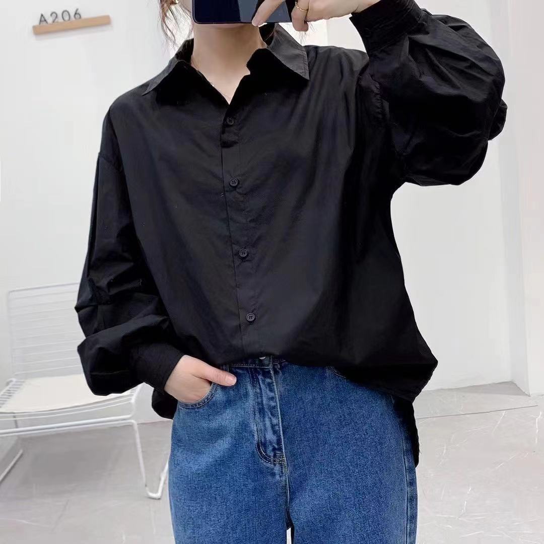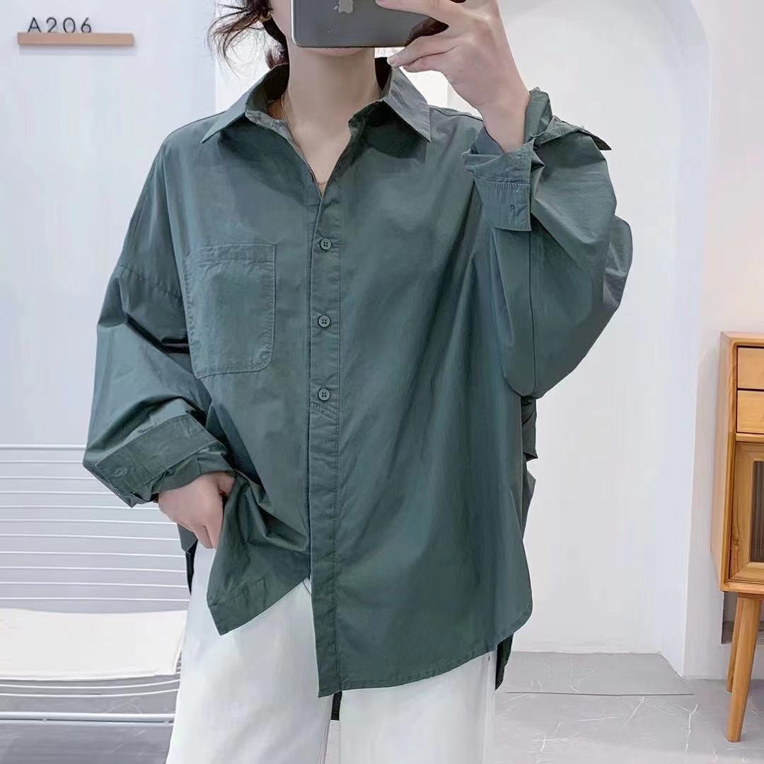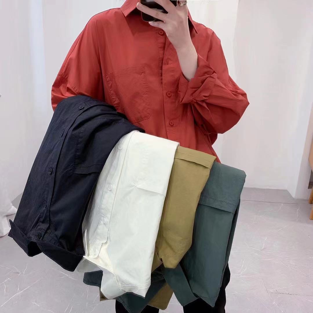 2022 Spring sleeve shirt dress rubbed color and loose large size single - row clasp literary temperament coat
