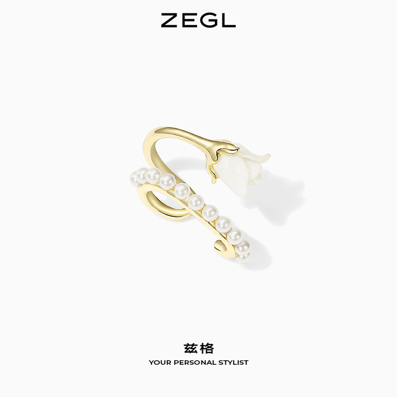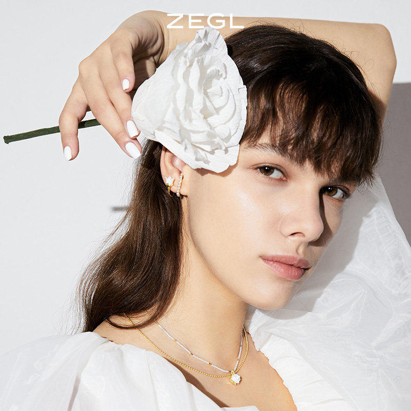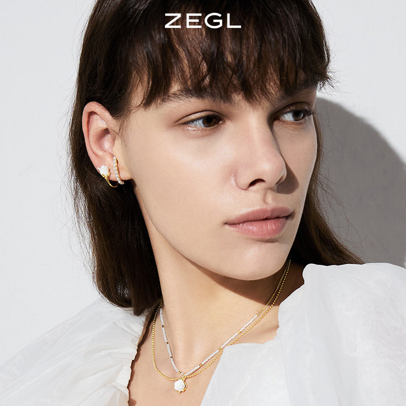 ZEGL designer white moonlight with white rose ear bone clip earrings women's earless pierced ear clips high-grade light luxury earrings