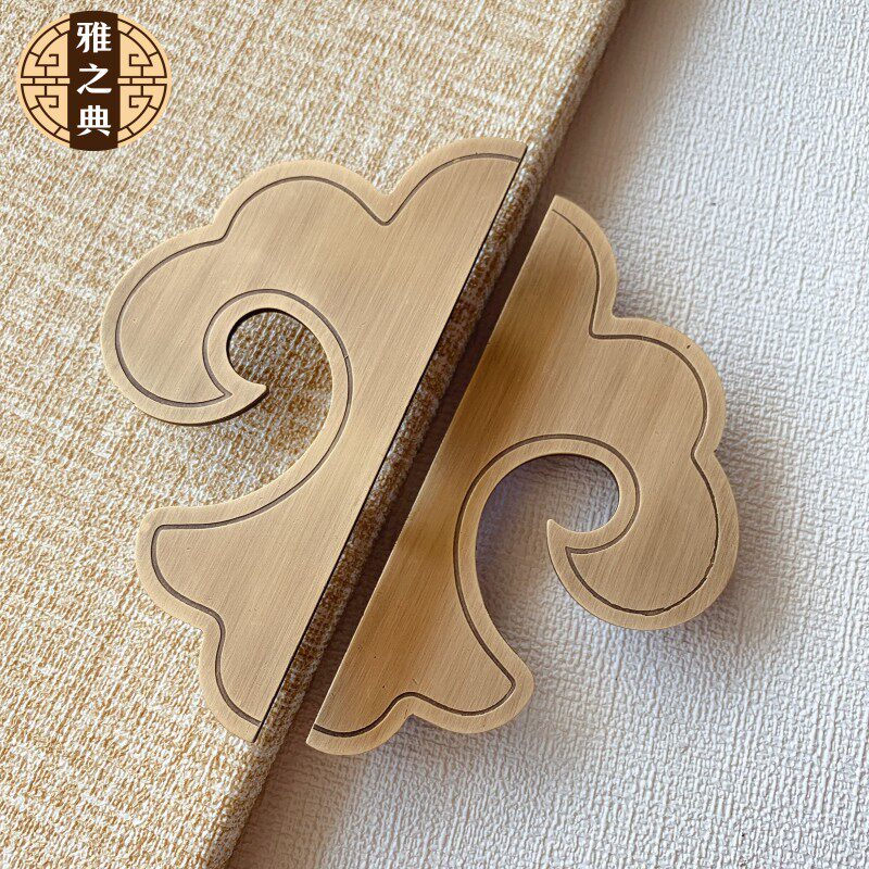 Chinese imitation ancient gate brass handle glass door of the whole cabinet drawers semi-circular Xiangyun wood minimalist around copper handle