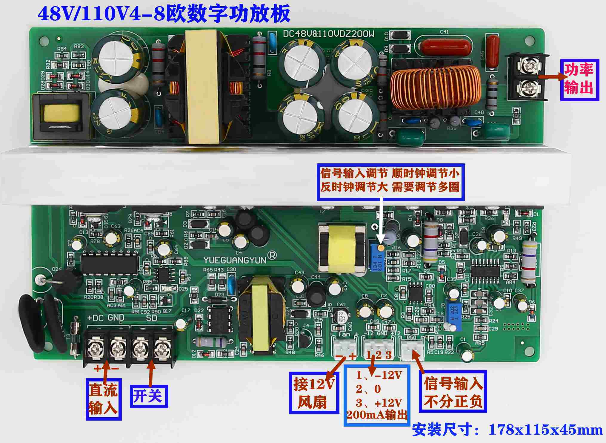 DC DC48V90V110V4-8 Europe mobile speaker square dance hand-drawn box subway broadcast digital power amplifier board