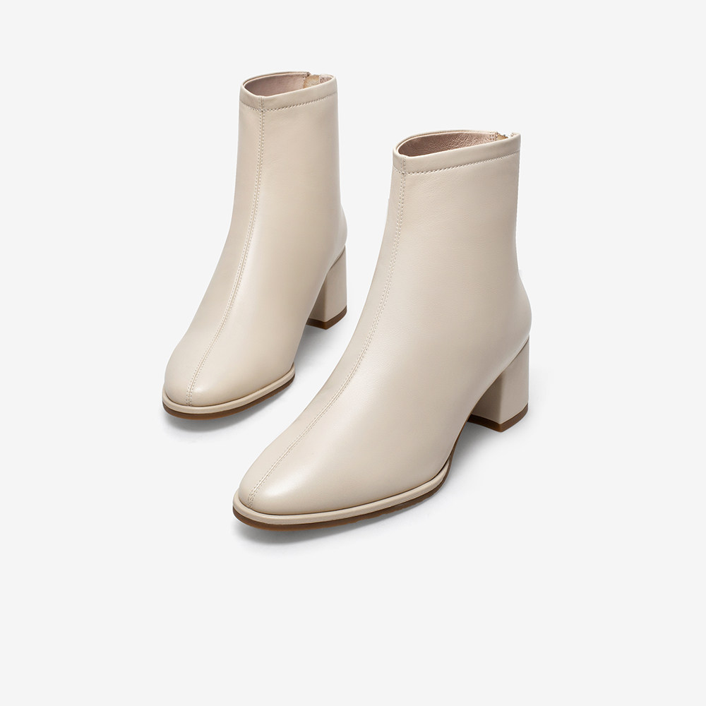 Bata Elastic Lean Boots Woman Autumn Winter New 100 Hitch Real Sheep Leather Coarse Heel Fashion Short Barrel Boots ANL42DD1