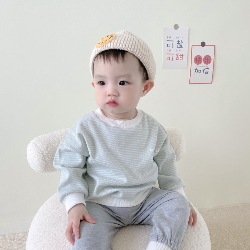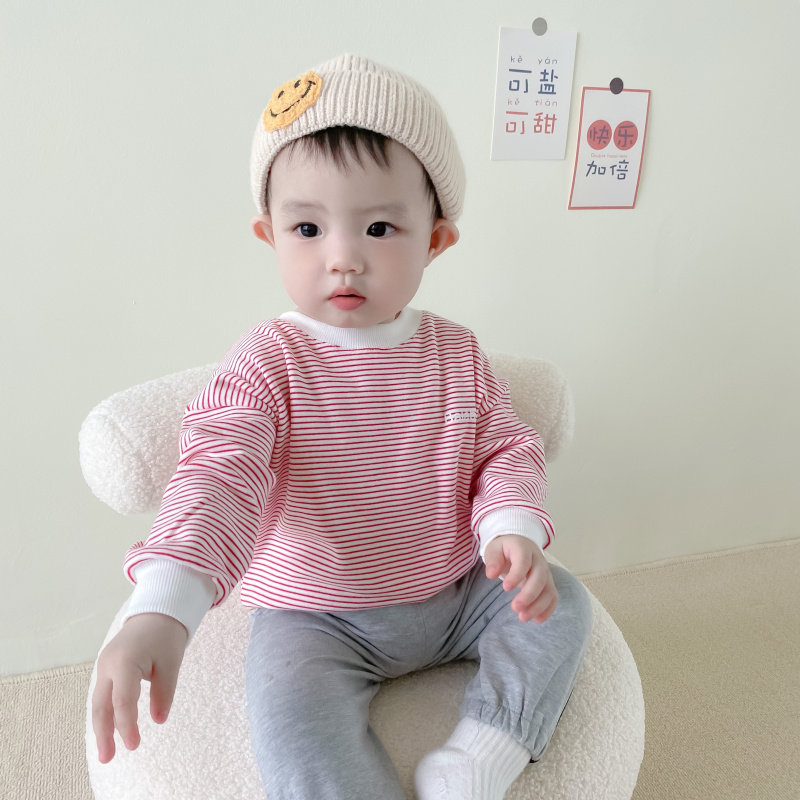 Children's Korean version thick cotton T in children's striped loose blouse male girl casual long sleeve boy dress spring fall 1-3