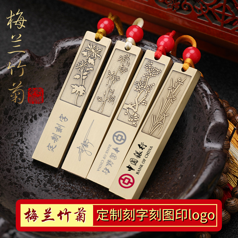 Antique Four Gentlemen U Disk 64G Personality Gift Custom Lettering Engraving Printing Logo with Gift Box Company Exhibition Creative Plum Orchid Bamboo Chrysanthemum Mobile Computer Dual-use Student Teacher Gift Custom U Disk