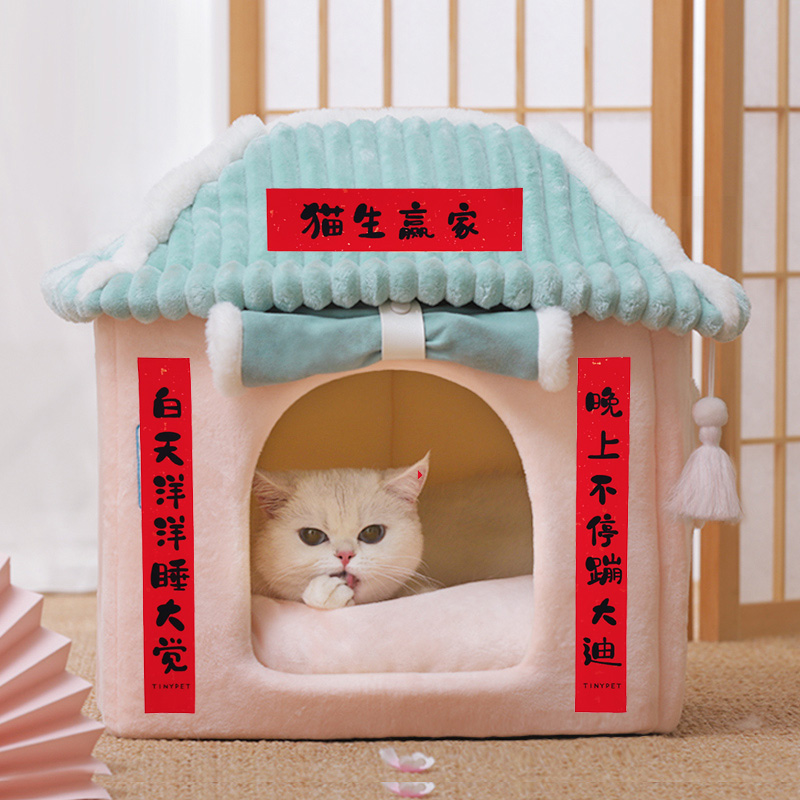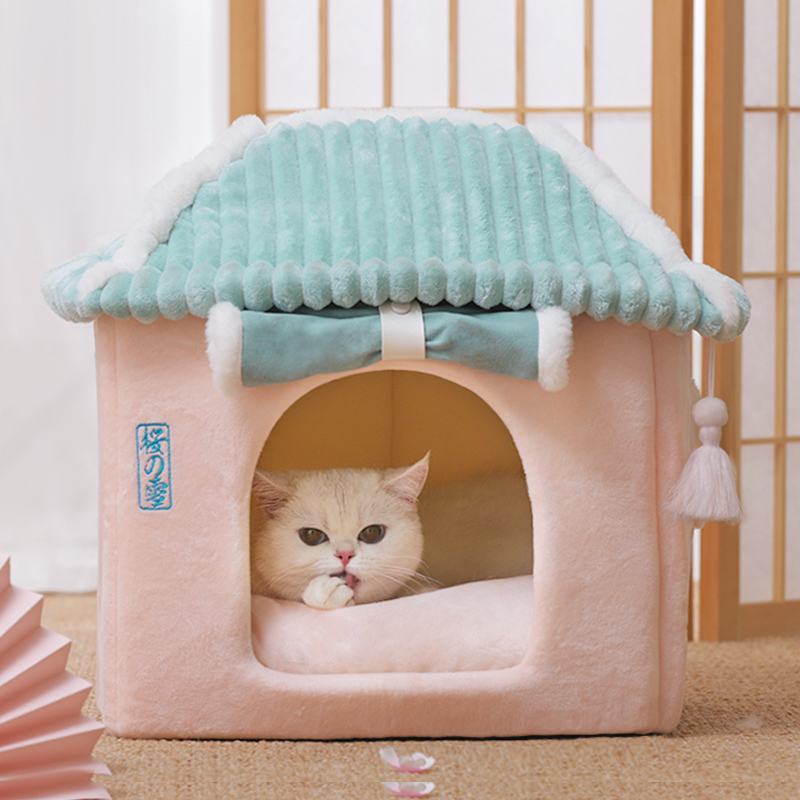 Cherry Blossom Cat Nest Winter Warm Season Universal Cat House Juvenile Cat Pet Kitty Supplies Enclosed Winter Cat Villa