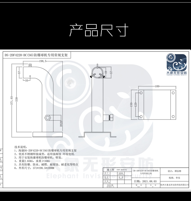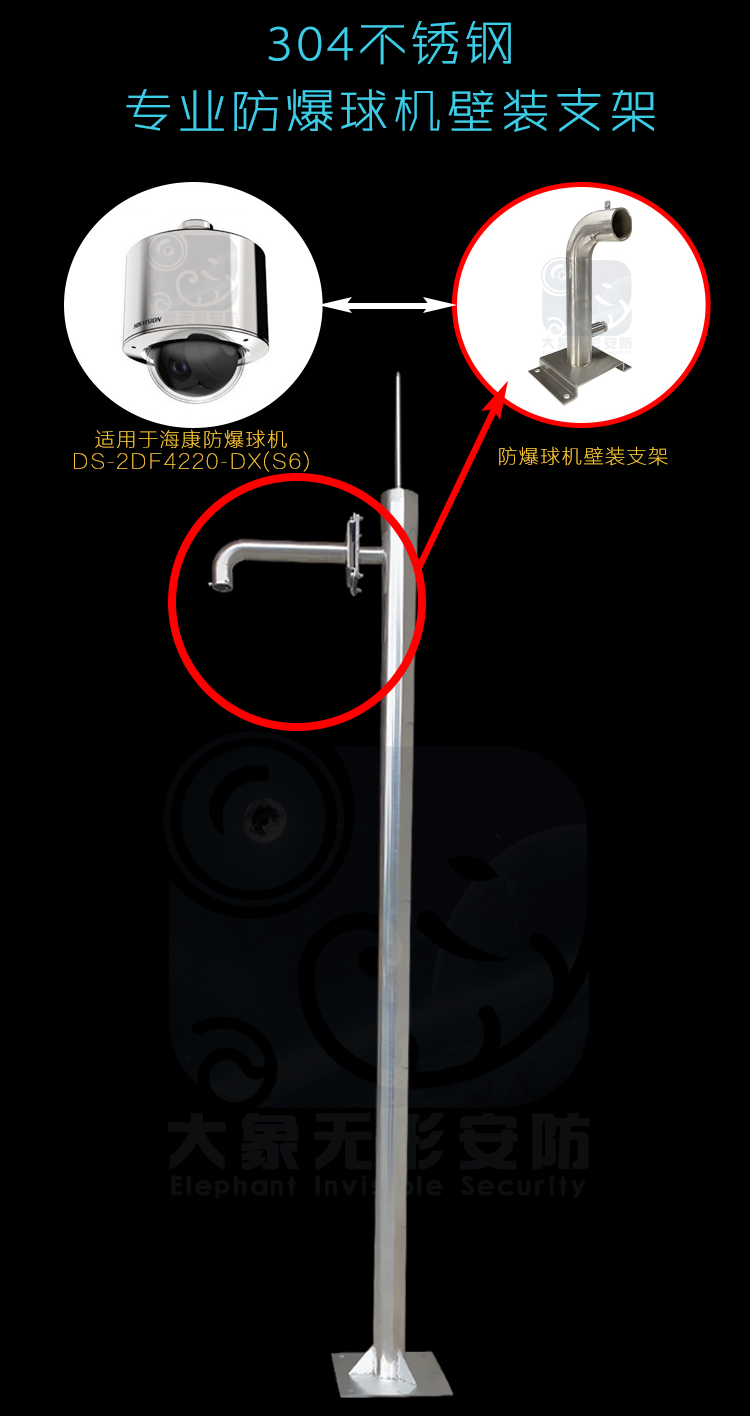 304 stainless steel explosion protection ball machine wall mounting bracket stand bar with industrial grade special acid resistant and corrosion resistant ball machine bracket