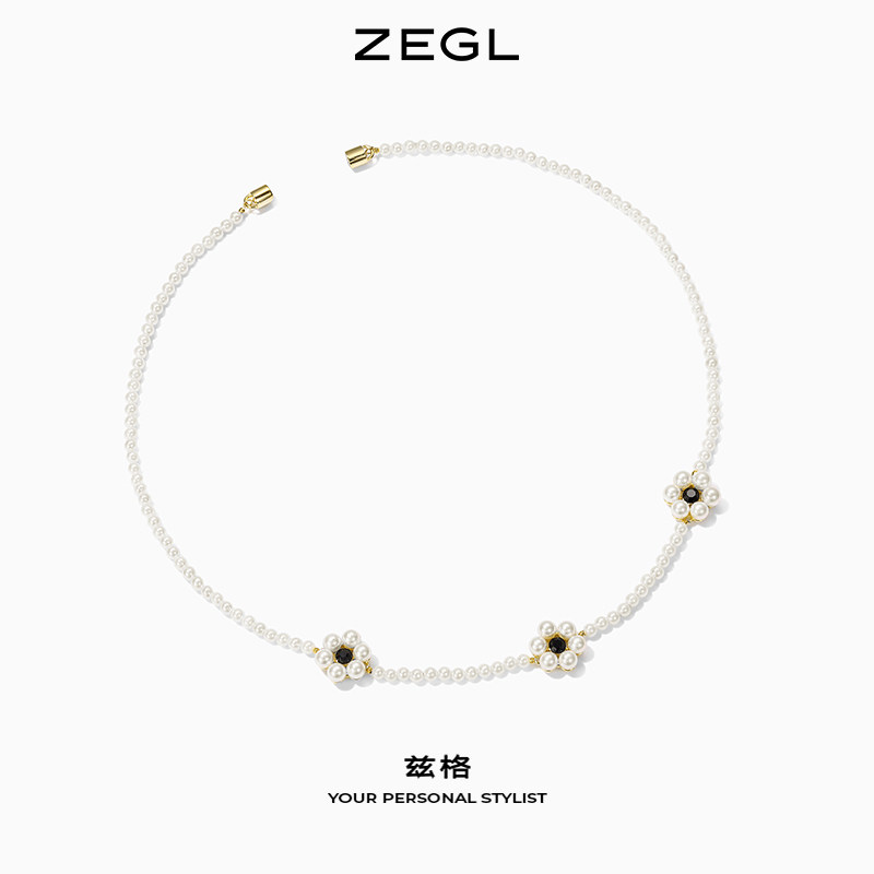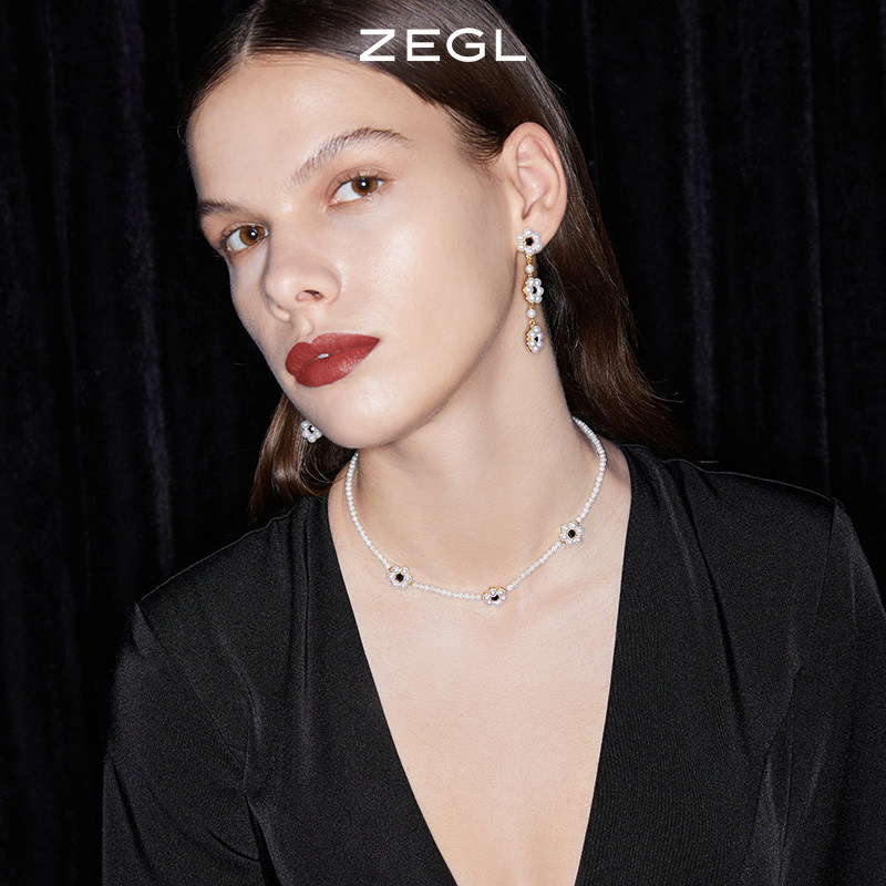 ZEGL designer The Crown French small flower necklace women's sense of luxury light luxury collarbone chain temperament necklace