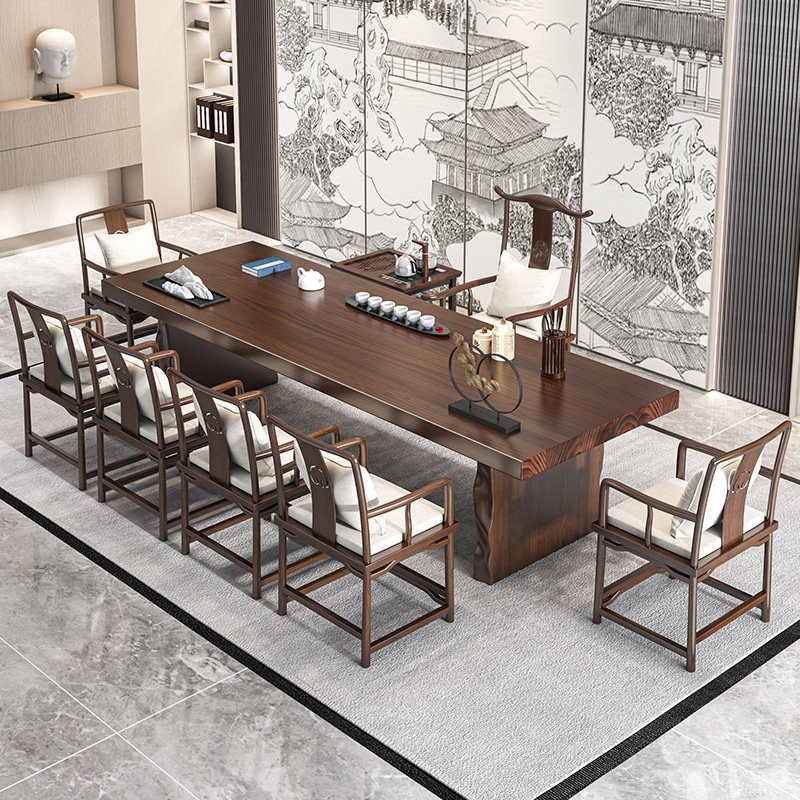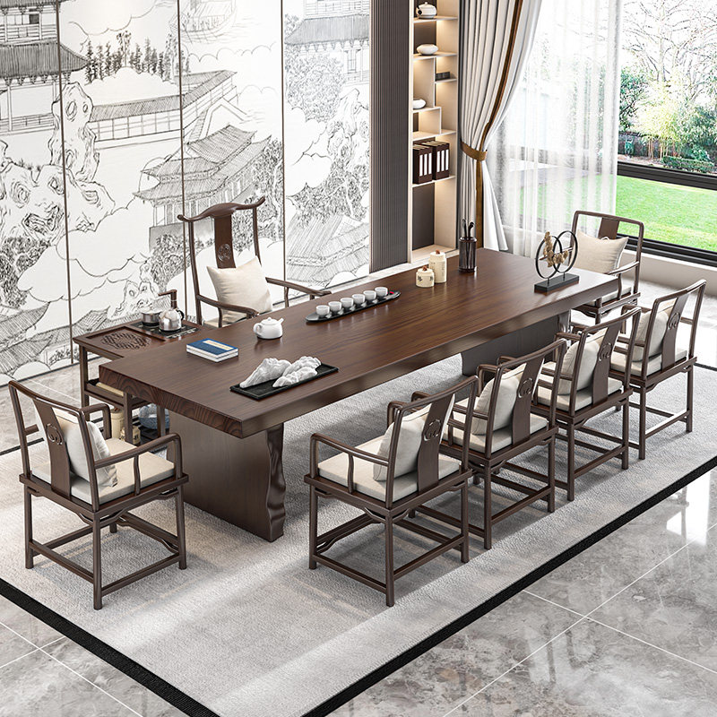 Chinese tea table solid wood tea table and chairs combination original wood color large plate tea table tea table Kung Fu Zen Serie tea table whole set