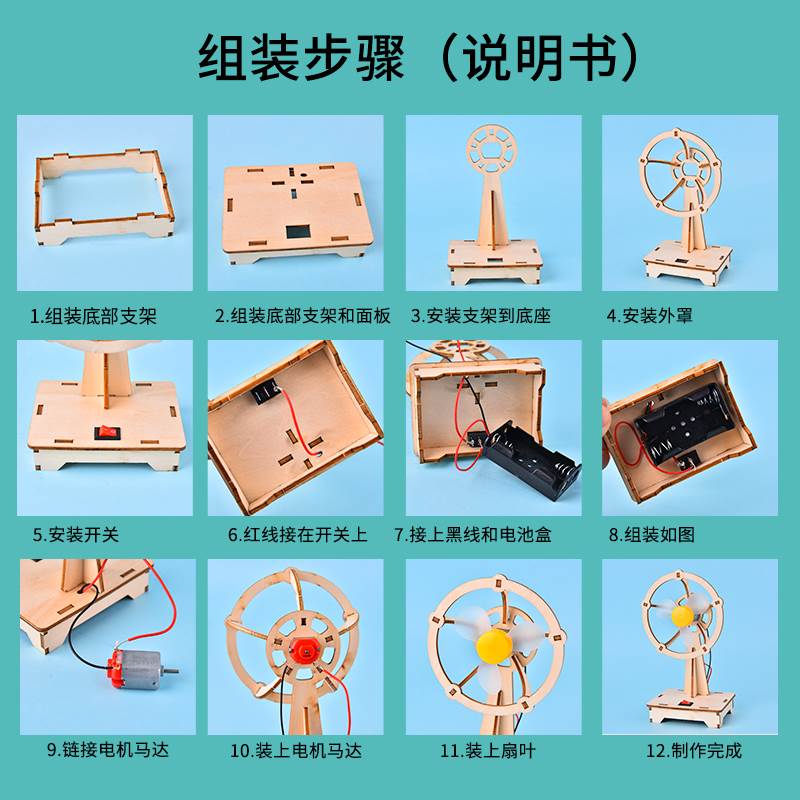 DIY wooden assembled fan collection sent battery DIY homemade fan