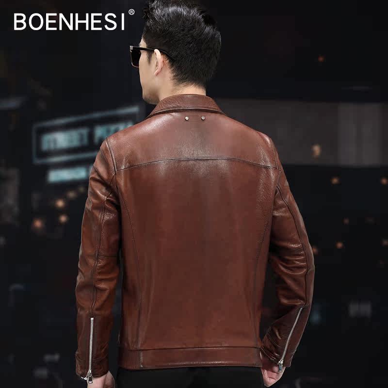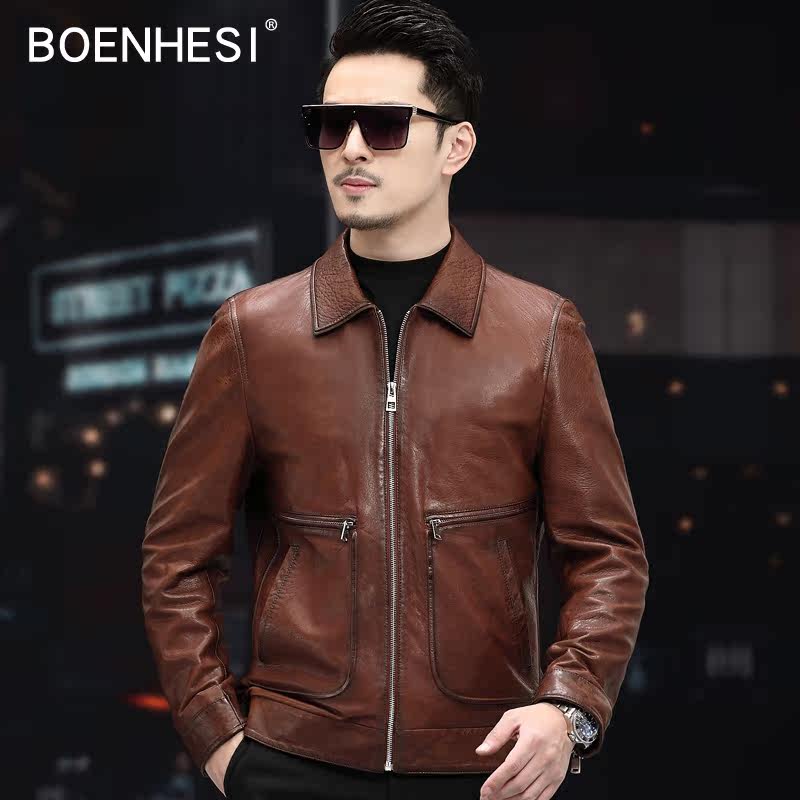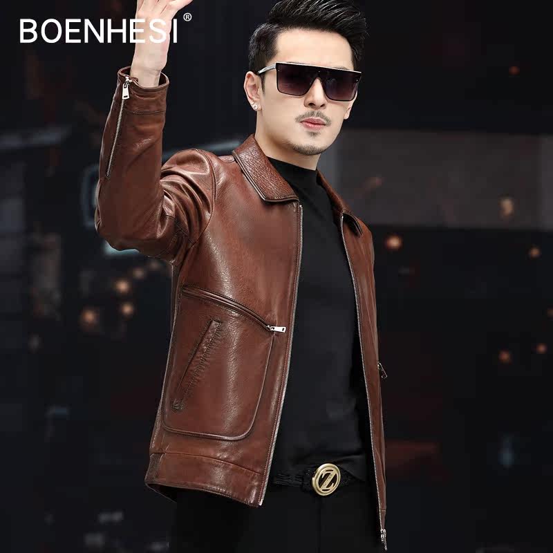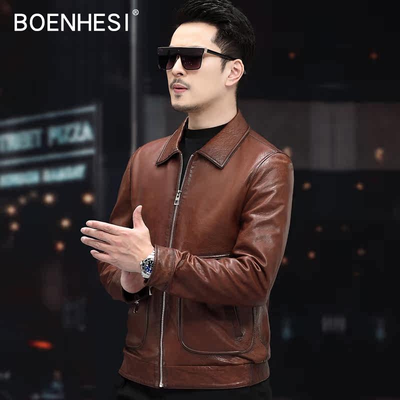 New Haining genuine leather jacket lapel single leather jacket short top layer oil wax sheepskin motorcycle jacket spring and autumn