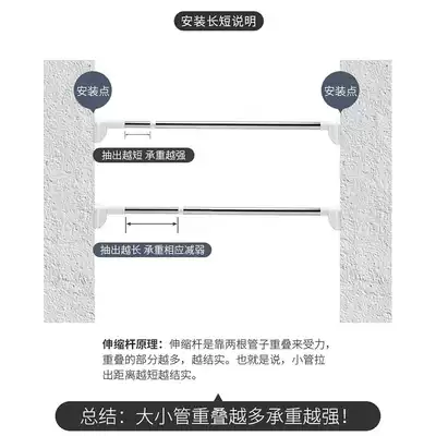 Wardrobe clothes hanging rod non-perforated telescopic rod wardrobe inside hanging clothes stainless steel balcony crossbar telescopic rod