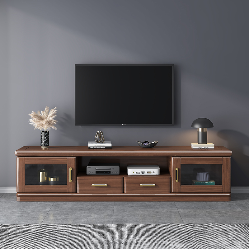 Solid wood TV cabinet coffee table combination Nordic new Chinese walnut small apartment living room household storage cabinet floor cabinet