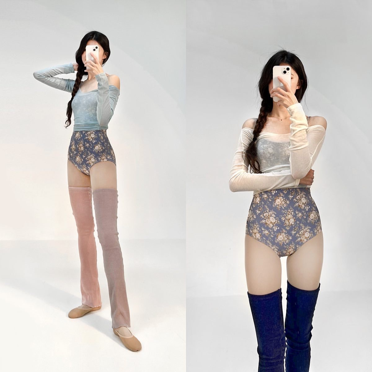 Spot multi-color Korean levdance Tencel wool ballet strapless top warm shirt long-sleeved blouse