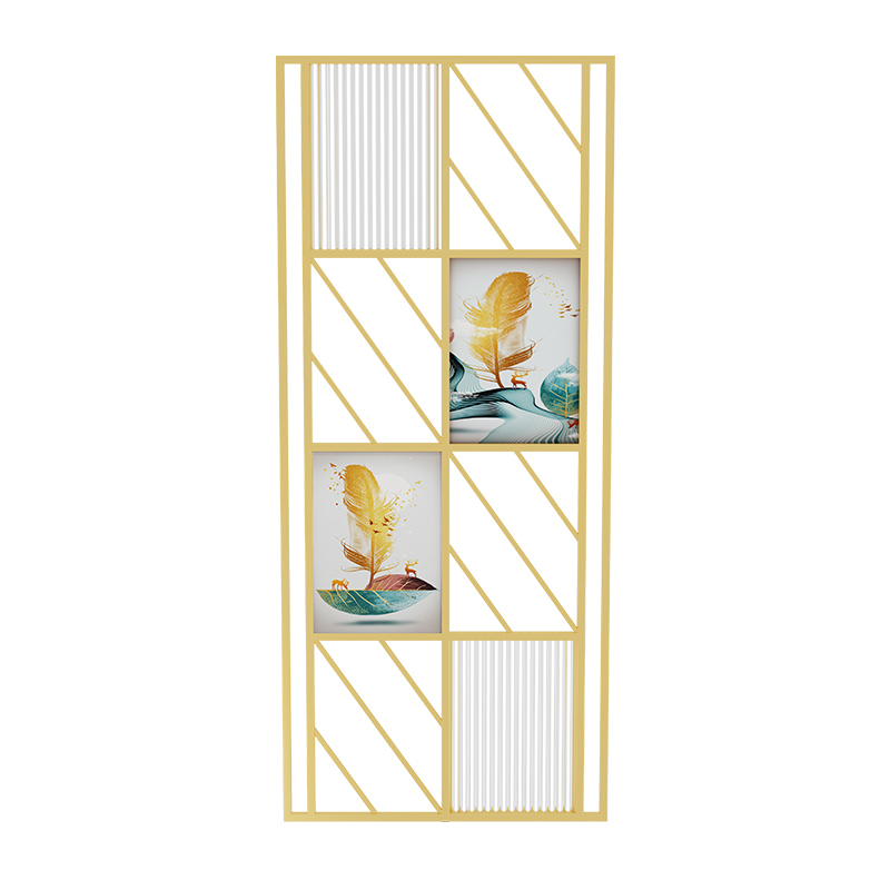 Nordic Light Extravagant Partition Screen Simple Hollowed-out Long Iridescent Glass Decorative Wall Iron Art Stainless Steel Living Room Entrance
