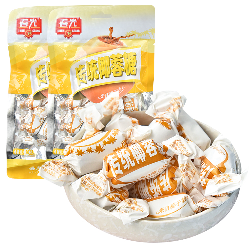 Spring Bright Coconut Sugar 120g*2 bags Coconut-flavored sweet snack candy meal coconut silk fructose fructose specialty production