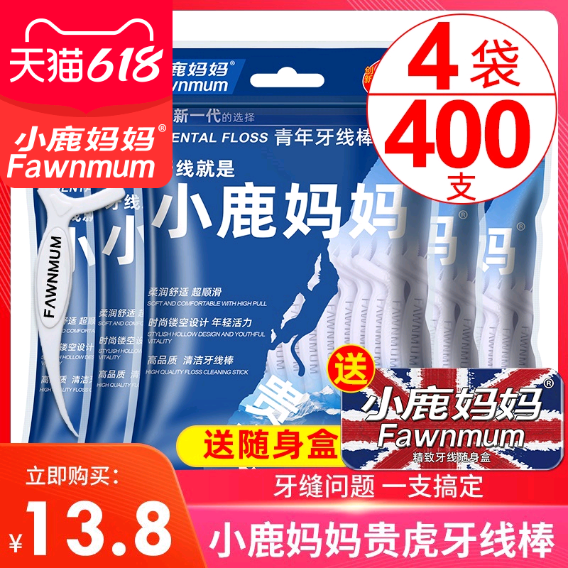 Small Deer Mom Noble Tiger Tooth Line Portable Box Ultra-fine Family Clothing Carry-on Tooth dental floss Floss Stick 4 bags 400