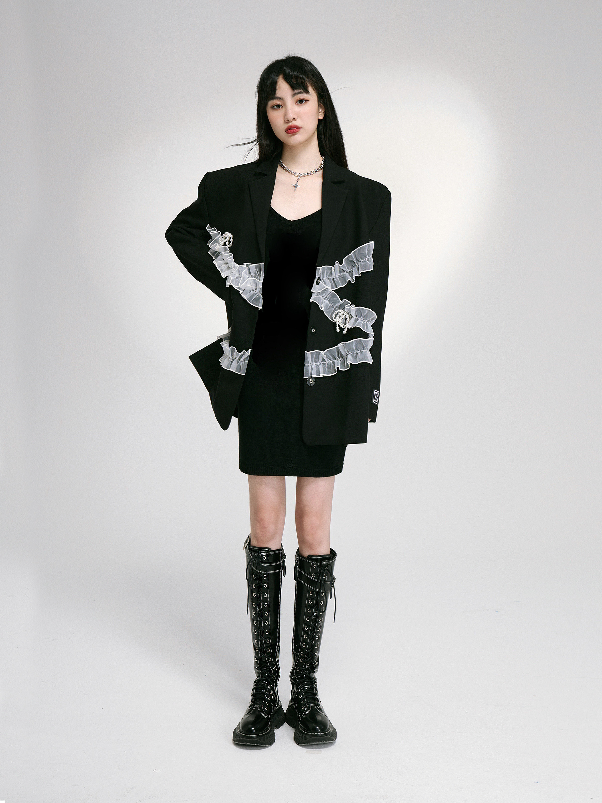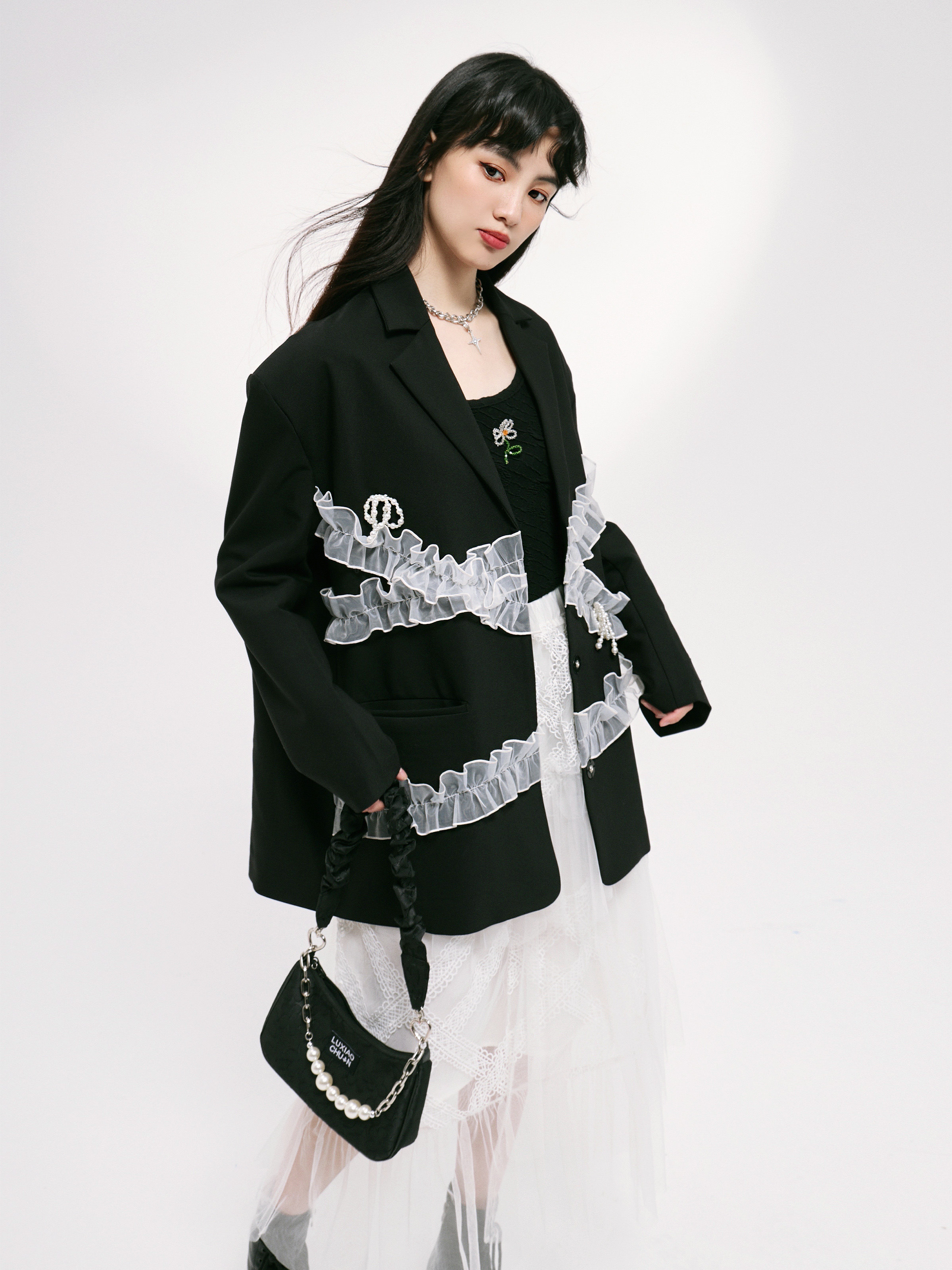 fragileheart fragile store original butterfly knot collared black suit jacket woman early spring small crowdsourced high level