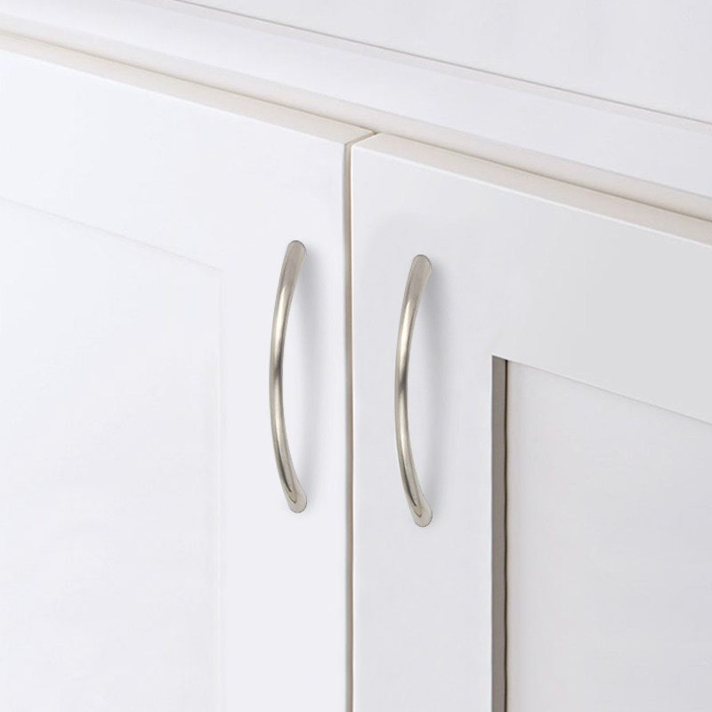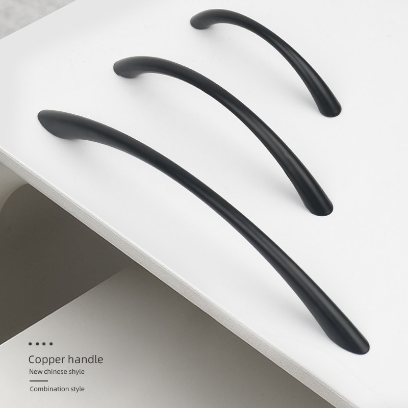 Silver brushed modern minimalist overall cabinet door curved solid door handle shoe cabinet drawer wardrobe door furniture black handle