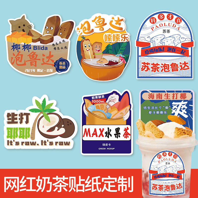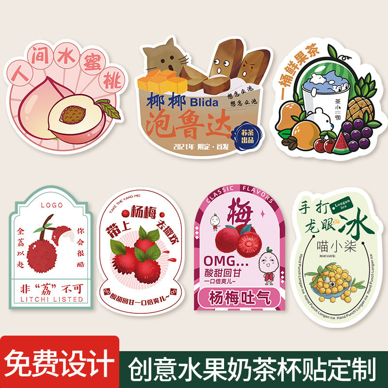 The same milk tea label of Xiaohongshu customized a bucket of tea drink cup sticker design fruit tea packaging waterproof trademark logo self-adhesive net red glutinous rice mochi sticker chestnut cup sticker custom