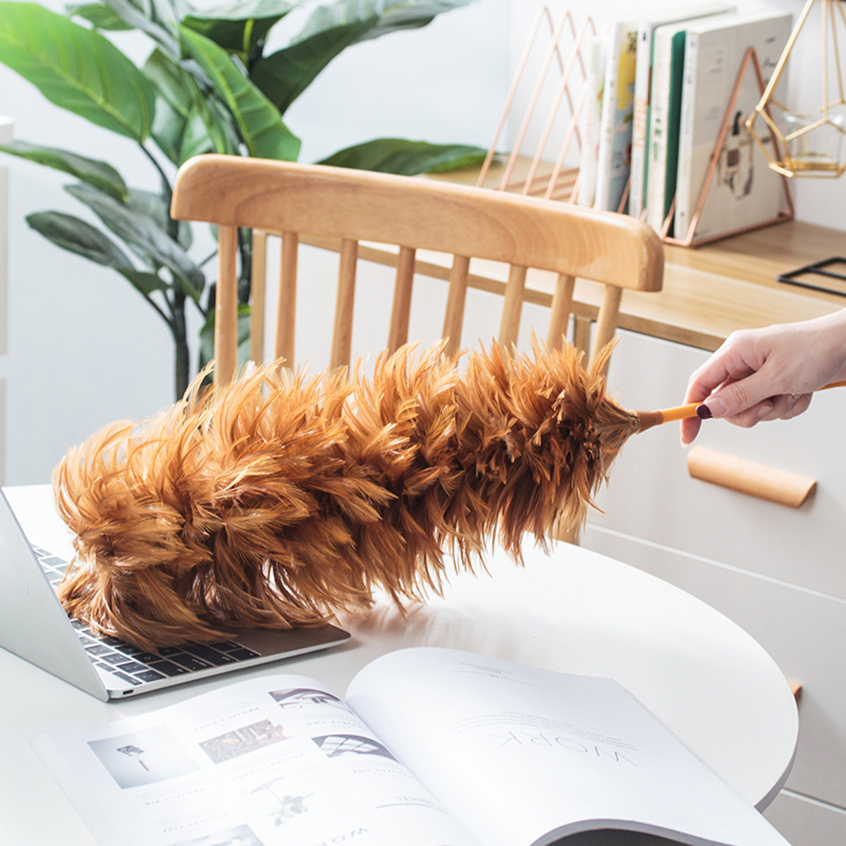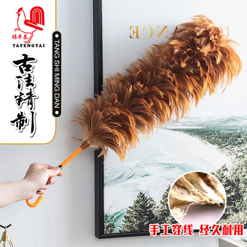 Hand-made duster, thickened and dense car real chicken feather duster household retractable can not drop hair dust sweeping cleaning duster