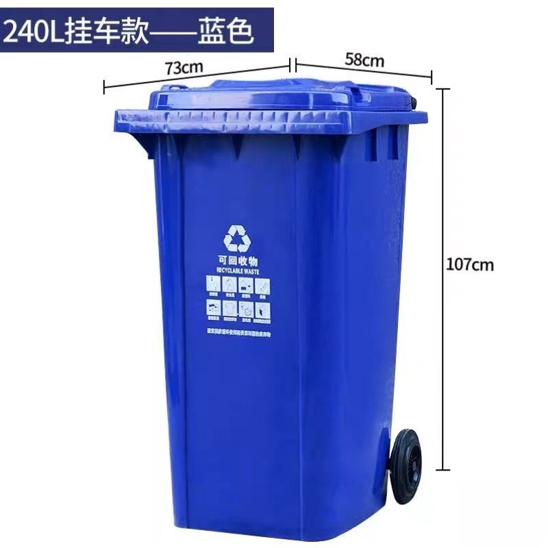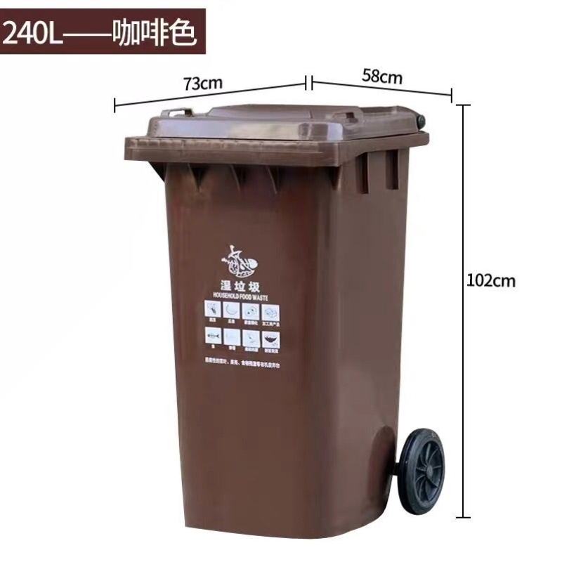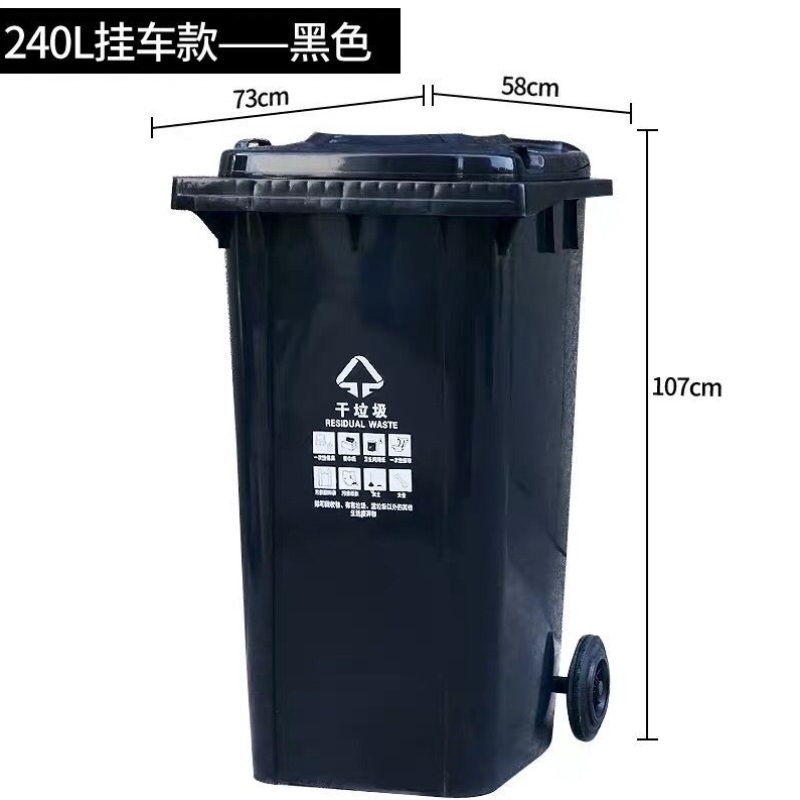 Shanghai standard four-category outdoor plastic trash can 240L large sanitation trailer black brown dry and wet separation