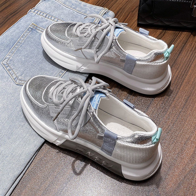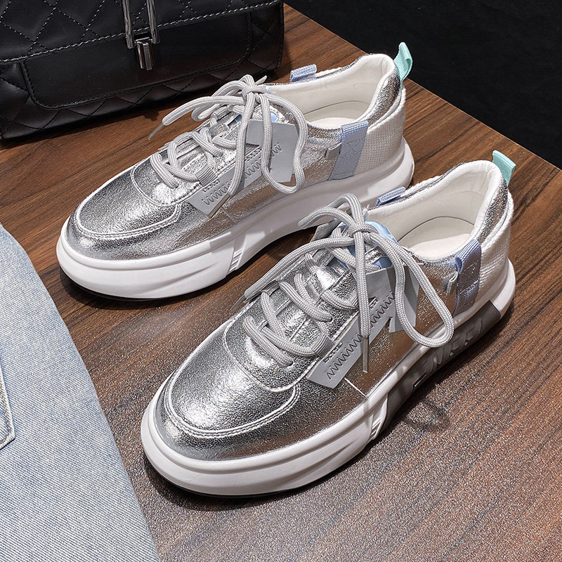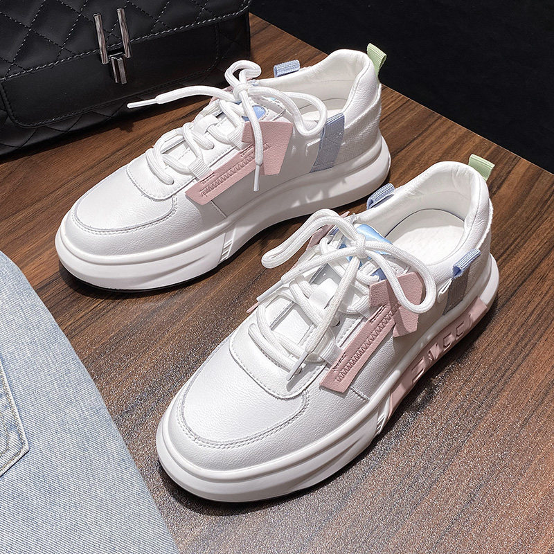 Small white shoes children 2022 new in spring in real leather and thick sole sports leisure old dad autumn slap shoes