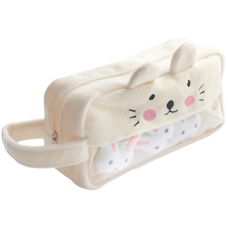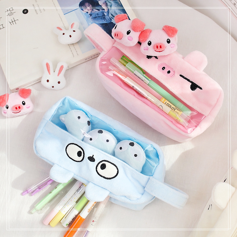 Cute cartoon stationery box Japanese super cute small animal plush pencil bag zipper girl heart personality storage canvas bag