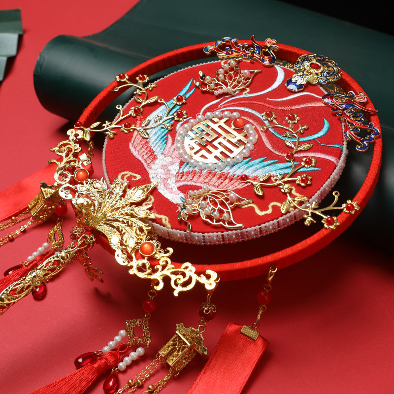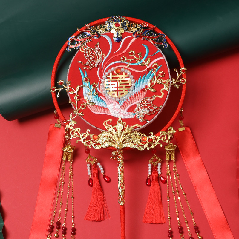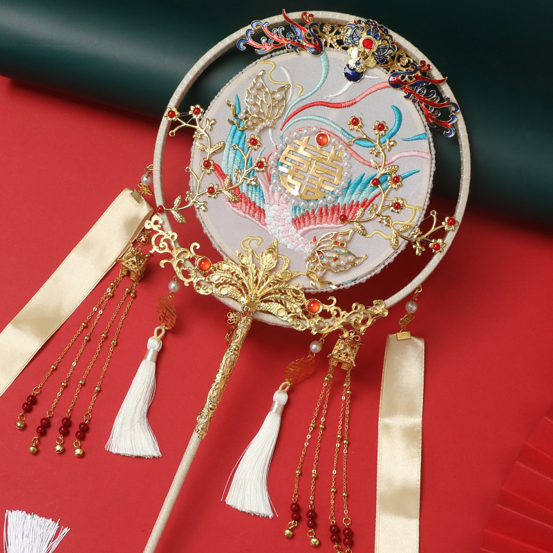 Chinese embroidered troupe fan wedding bride ancient wind out of marriage yet fan show and fan long handle finished product diy material bag