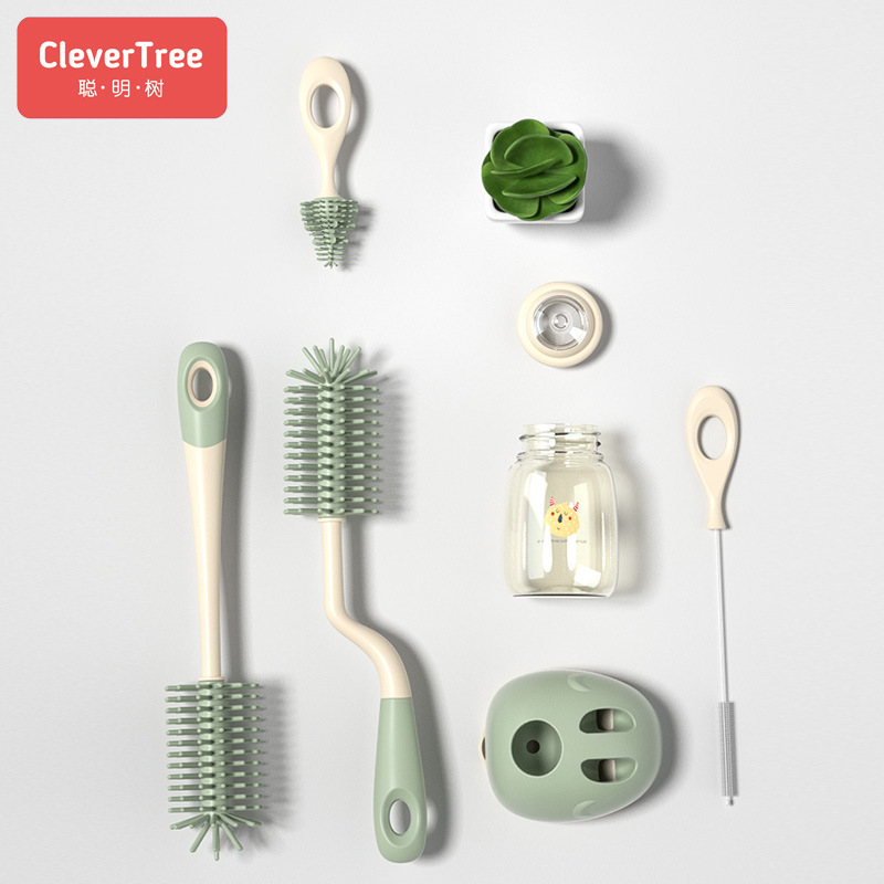Silicone Milk Bottle Brushed Pacifier Brushed Straw Brush With Three Sets Baby Wash Bottle Water Glasses Clean Shelve Suit Mildew