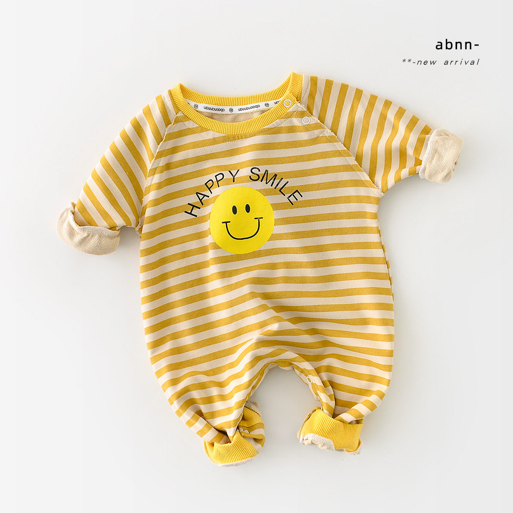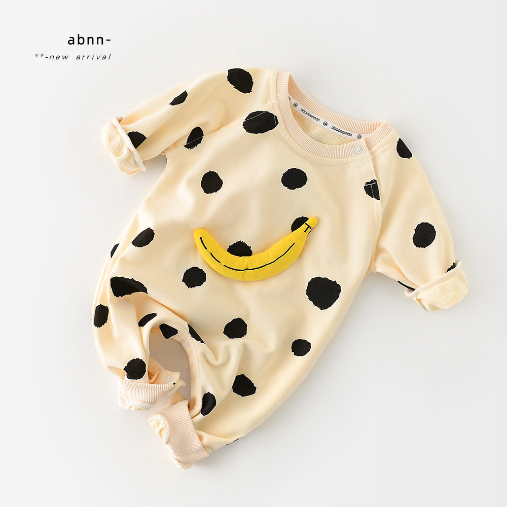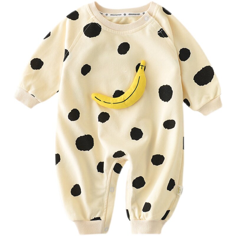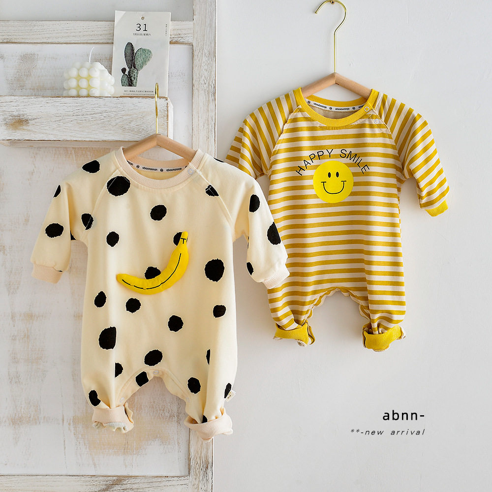 2022 Spring and autumn models Baby Han version Baby cartoon Cartoon Banana Smiling Face climbing clothes for men and women The baby is out of clothing