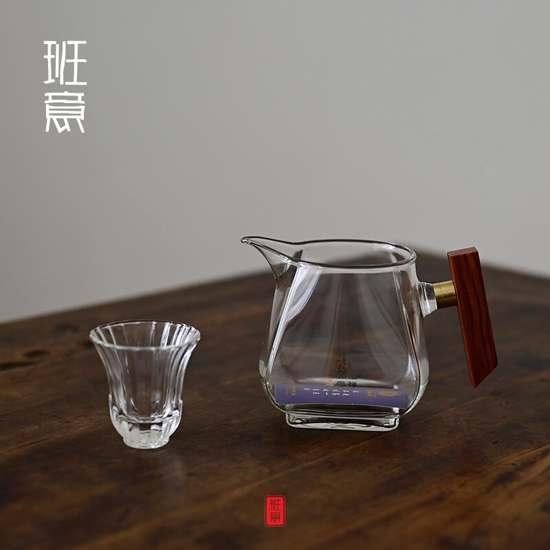 Glass Wood Handle Sub tea Artisan Quadrilateral Fair Cup heat Thickened Tea Haseigong Fu Tea Kit Component Tea Public Cup