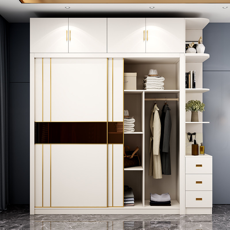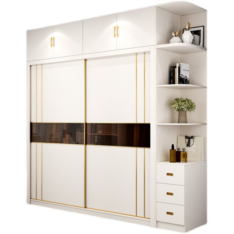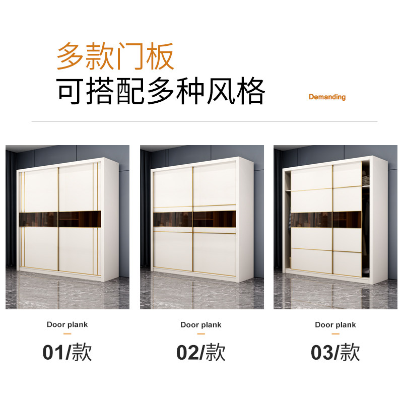 Solid wood wardrobe sliding door simple modern bedroom home cabinet multi-layer ecological board small apartment sliding door wardrobe