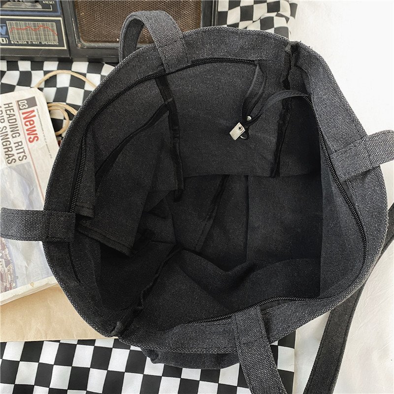 Canvas bag men's single shoulder messenger bag niche Japanese ins large capacity student class handbag female cloth bag trendy brand