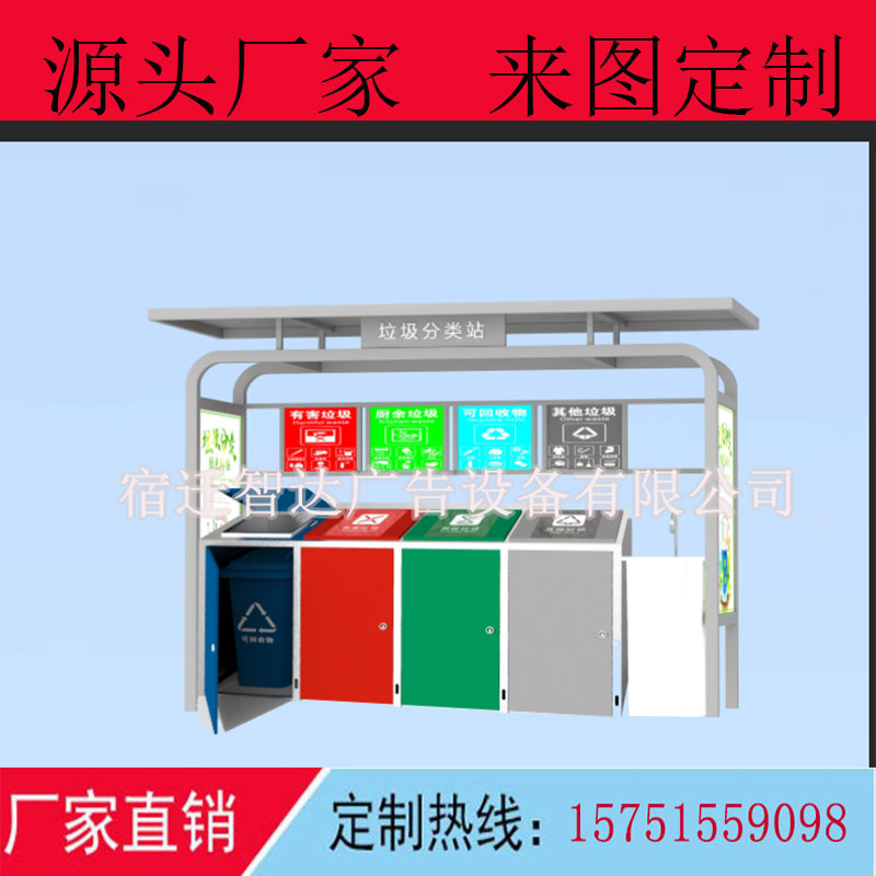 Outdoor garbage sorting collection pavilion recycling station stainless steel garbage bin four classification street garbage house pedal