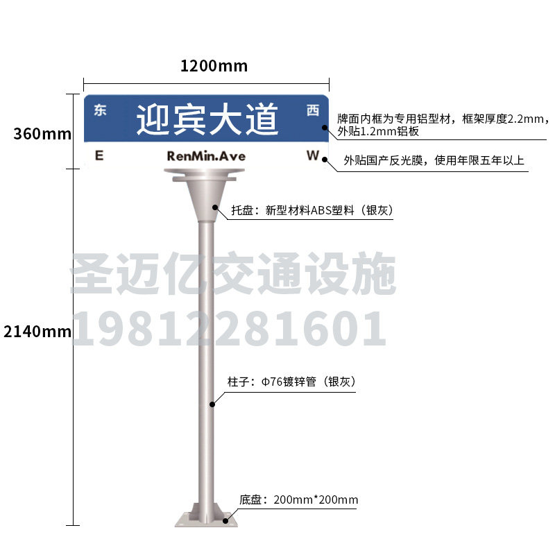 3M road famous brand column type hemmed aluminum customized road sign T type reflective traffic sign street road name plate