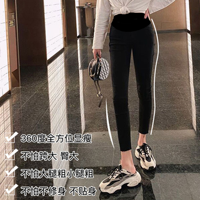 Pregnant women's skinny jeans summer thin section Korean thin elastic blue nine points raw edge skinny pencil pants spring and autumn