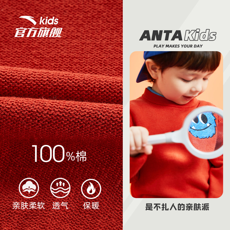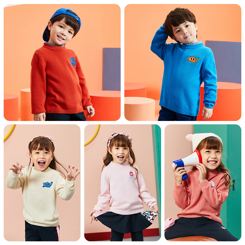 Ahn stepped official flagship store Children's autumn clothing 2021 autumn and winter male and female baby sets knitted undershirt
