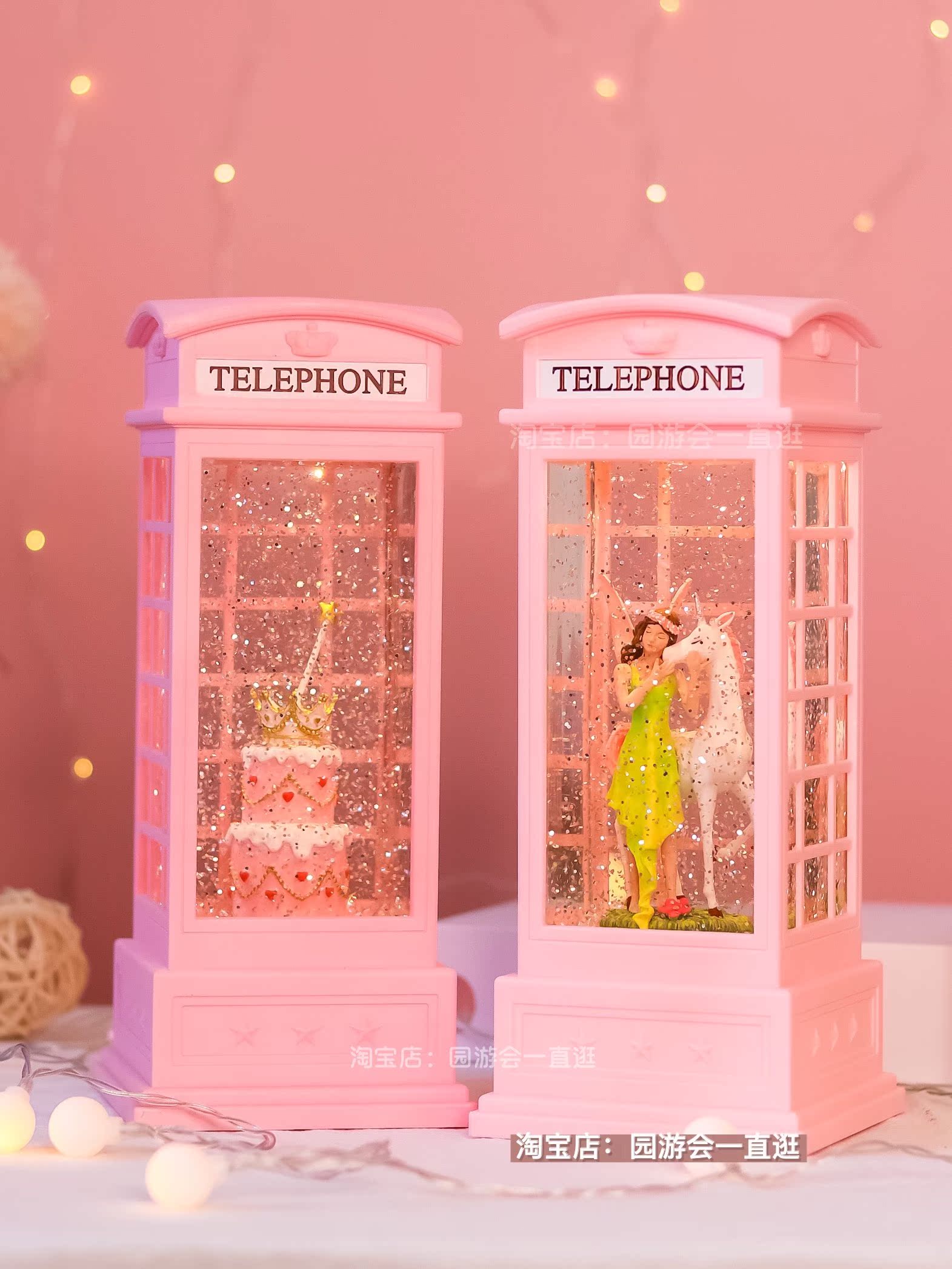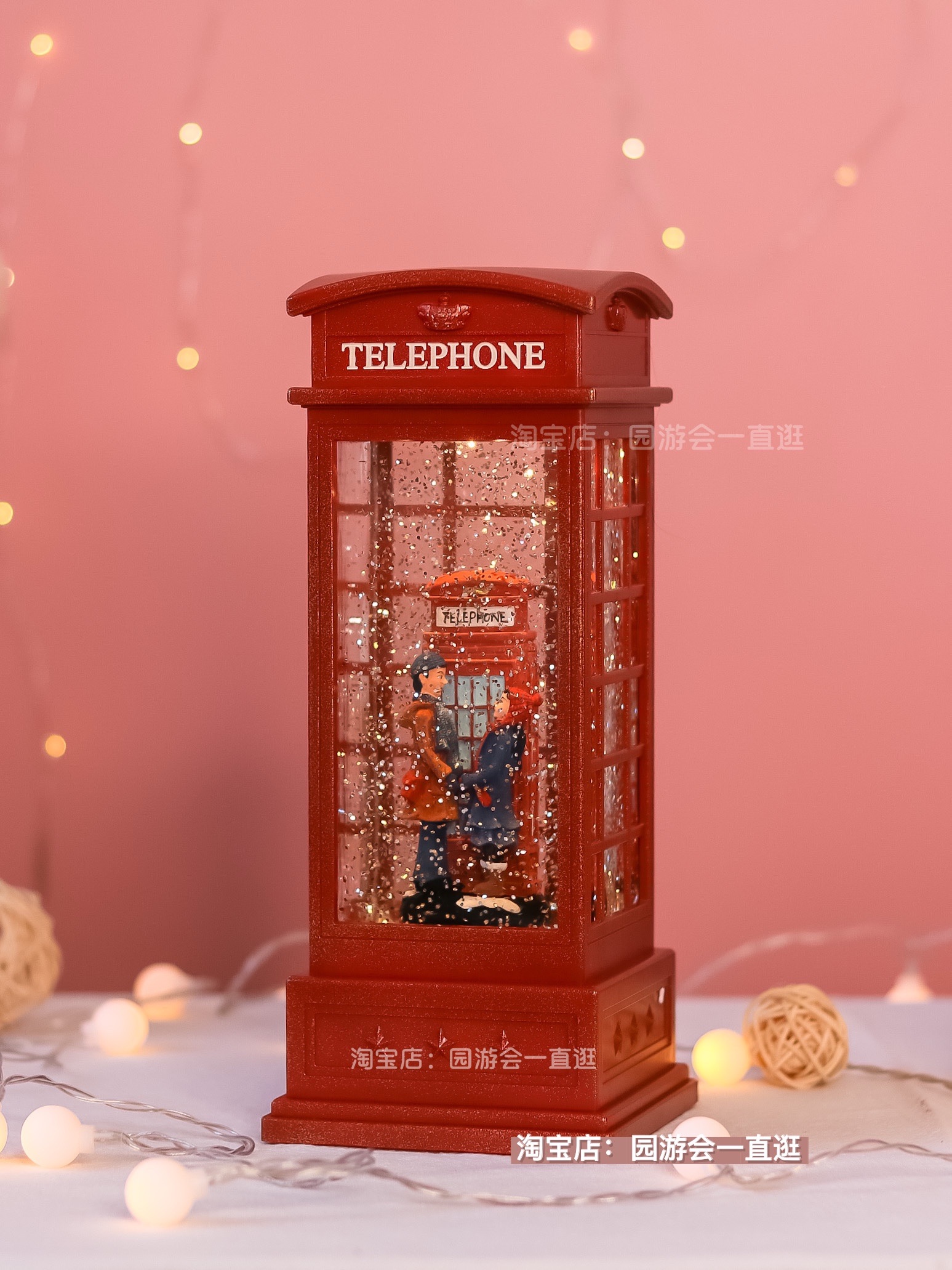 Valentine's Day gift couple phone booth music box crystal ball girl make a wish windproof light music box romantic ornaments